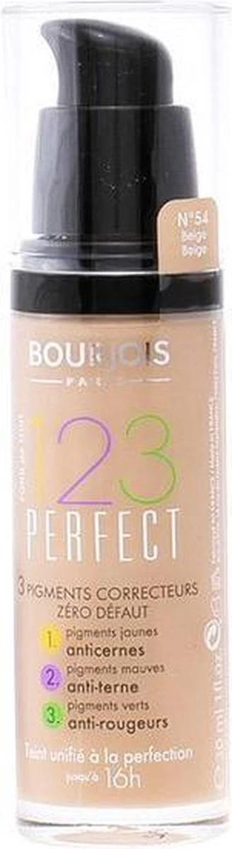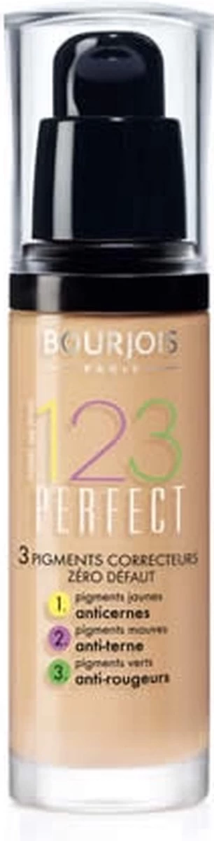 Speel met kleurcorrectie om een perfecte look te creëren. Begin de dag met de Bourjois 123 Perfect foundation voor een flawless uitstraling die tot wel 16 uur blijft. Het is een innovatieve formule gecombineerd met 2 correctie pigmenten voor een flawless huid zonder imperfecties: 1 geel pigment om donkere kringen te maskeren en zorgt tegelijkertijd voor een uitgeruste look; 2 Mauve pigmenten om vermoeidheid te corrigeren en de uitstraling een boost te geven; 3 Groene pigmenten om roodheid te neutraliseren voor een gelijkmatige afwerking. Dus waar wacht je nog op? Als je er de hele dag fantastisch uit wilt zien, is 123 Perfect Foundation de perfecte manier om je huidtint te egaliseren. Blend met de hand voor een streepvrije afwerking of gebruik een sponsje voor die glamoureuze airbrush-look. Één laag biedt een gemiddelde dekking, maar kan worden opgebouwd zonder cakey te worden. Voor een flawless, halfmatte afwerking die zelfs de grauwste teint oplicht en blijft gedurende de dag… Bourjois 123 Perfect Foundation verdient een plekje op je top 10 lijst van schoonheidsgeheimen. Contouring met foundation: Contour een natuurlijke look zonder bronzer of een highlighter. Je hebt foundation nodig in drie tintent om lichtreflecties en schaduwen te weergeven. Fixeer vervolgens de countouren met fixer spray of -poeder. Contouring is een make-uptechniek waarmee je je gezicht alleen met make-up vervolmaakt. Het geheim schuilt in het spel met licht en schaduw: Door opzettelijk hoogte en diepte aan te brengen tijdens het contouren, verander je het effect van je gezichtscontouren. Contour-make-up geeft je gezicht een bijzonder uitgesproken driedimensionaliteit en symmetrie en laat je van je beste kant zien. Met contour-make-up breng je je natuurlijke uitstraling optimaal tot zijn recht. Door je gezicht te contouren, verberg je kleine vlekkjes en oneffenheden