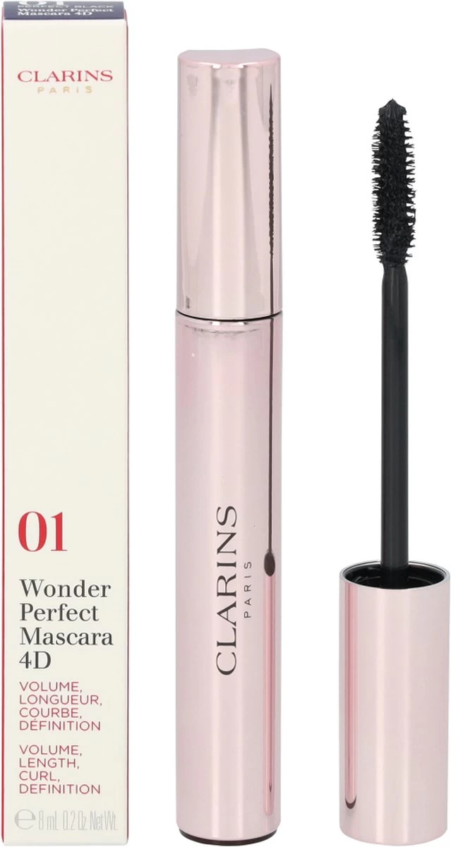 De Wonder Perfect Mascara 4D van Clarins geeft jouw wimpers de 4 dimensies van een perfecte oogopslag: volume, lengte, krul, high-definition. Geformuleerd met rozenwas dat bekend staat om zijn wimperkrullende werking.