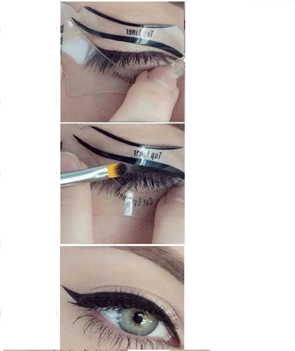 Plaats de stencil op je oog en breng zonder geknoei je eyeliner of oogschaduw op.