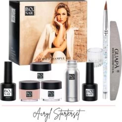 Compleet Acryl Nagels Starterspakket van professionele kwaliteit! Alles wat je nodig hebt voor het eenvoudig maken van professionele acryl nagels zit in deze set, zo ontvang je 3 verschillende kleuren acryl poeder, acryl vloeistof, acryl penselen en nog veel meer om snel en eenvoudig acryl nagels te zetten.