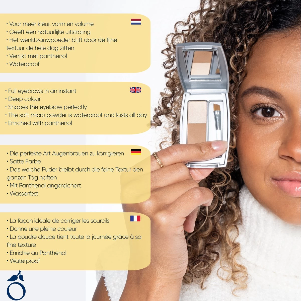 Om wenkbrauwen meer kleur, vorm en volume te geven gebruik je een wenkbrauwpoeder.
