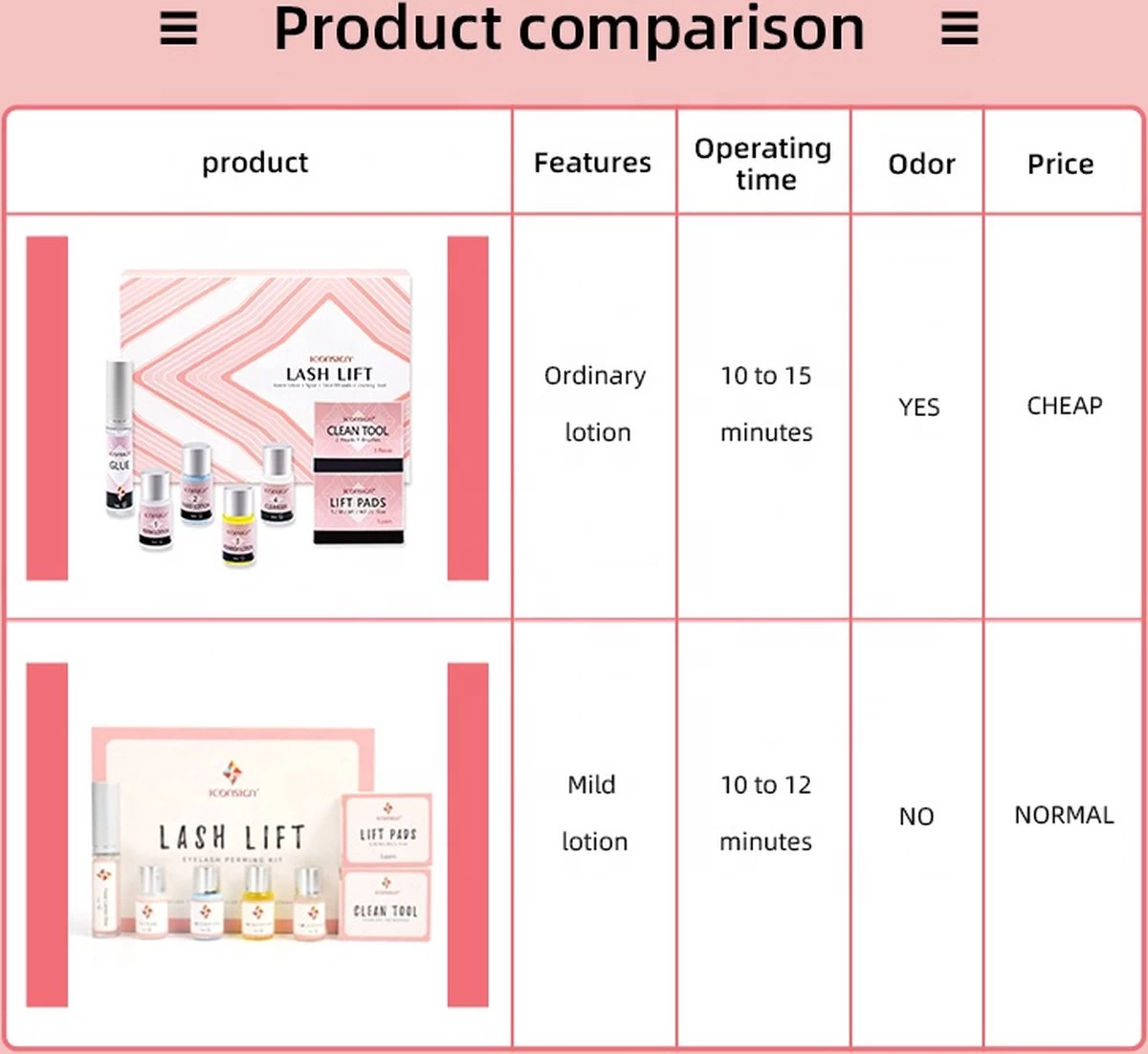 Stappen 1. Gebruik een reinigingsmiddel om de olie, stof en make-up resten te verwijderen. 2. Breng daarnaast de oogbeschermers aan, onder de oogleden om je huid te beschermen tegen de permanente lotion 3. Vervolgens plaatst u de liftpads op de wimper en brengt de lijm aan op de wimper om deze vervolgens op de pads te laten kleven. 4. Daarna gebruik je een lijm en plaatst de wimper 1 minuut op de liftpads. 5. Daarnaast gebruik je de #1 lotion op de wimper en bedek de plastic pads ruim 8-12 minuten 6. Vervolgens de fixatiemiddel #. 2 op de wimper en bedek deze plastic pads ruim 8-12 minuten 7. Reinig de wimperlift kussentjes en gebruik daarna vervolgens de # 3 voedingslotion om wimpers te voeden. 8. Gebruik de nummer # 4reiniging om dus alle perm resten te vervolgens te verwijderen.