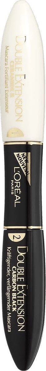Ontdek de Double Extension Extra Black Mascara: deze dubbele mascara zorgt in 2 stappen voor langere en verzorgde wimpers. De basislaag, voedt, beschermt en versterkt de wimpers. De toplaag, bevat ultra verlengende buisjes voor zichtbare verlenging van de wimpers tot 80 procent.