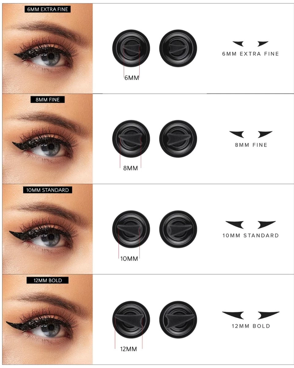 Een winged eyeliner die je niet kan verpesten! Het werkt super simpel; stempel de wing direct naast je ooghoeken voor perfect gelijke wings in seconden. Elke Easy Wing komt in een set van 2 pennen met een stempel en stift. Elke pen bevat een aparte stempel voor je linker of rechter oog en een stift om de lijn te tekenen. We hebben 4 verschillende maten beschikbaar, van een minimalistische look tot een bold wing, we got you!
