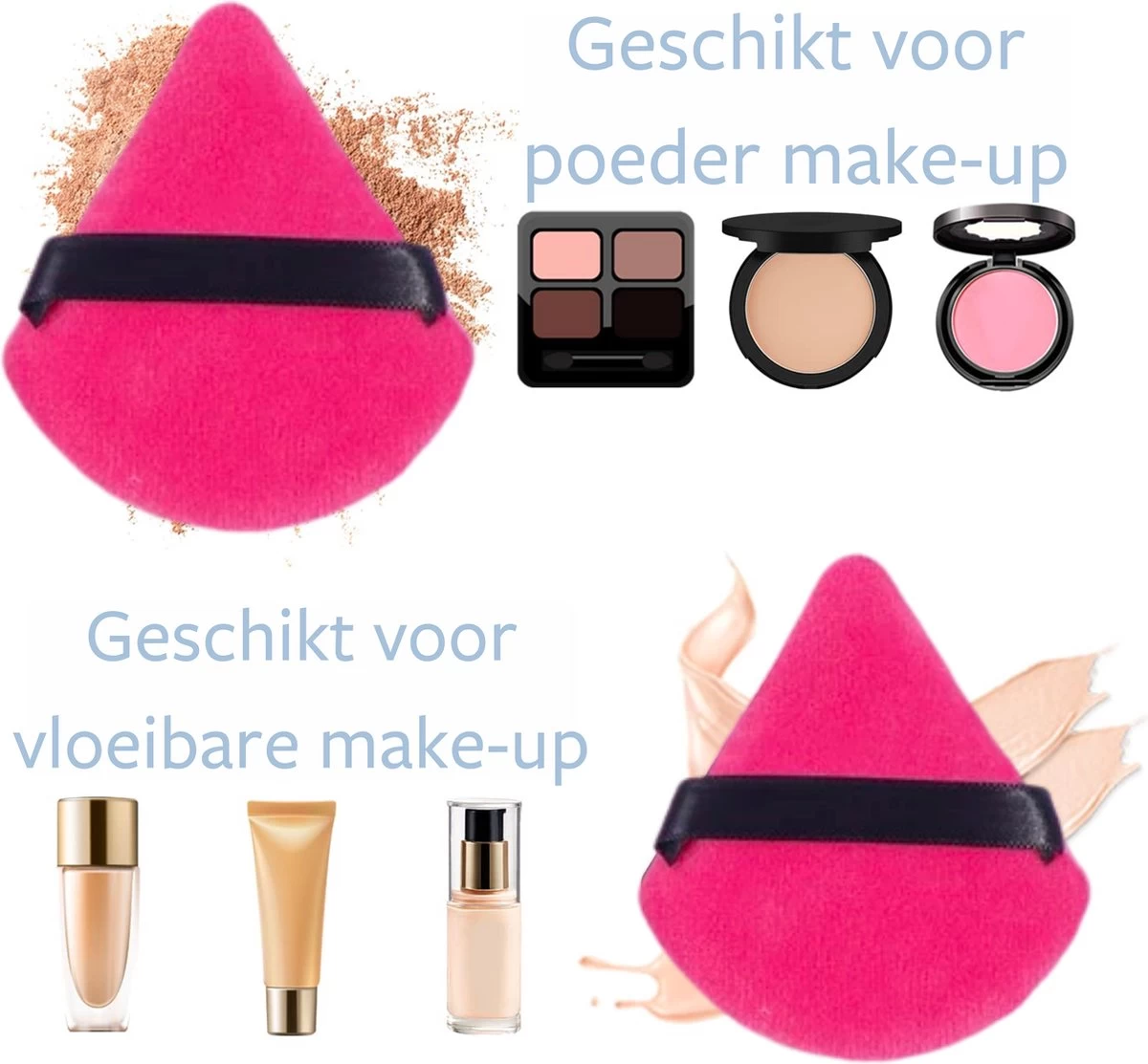 - Handigere maat en vorm! In tegenstelling tot de ronde variant kun je met de driehoekige powder puff gemakkelijk bij alle plekjes van je huid komen. Hierdoor ziet je make-up er gegarandeerd flawless uit. Dat lastige hoekje onder je ogen, bijvoorbeeld…