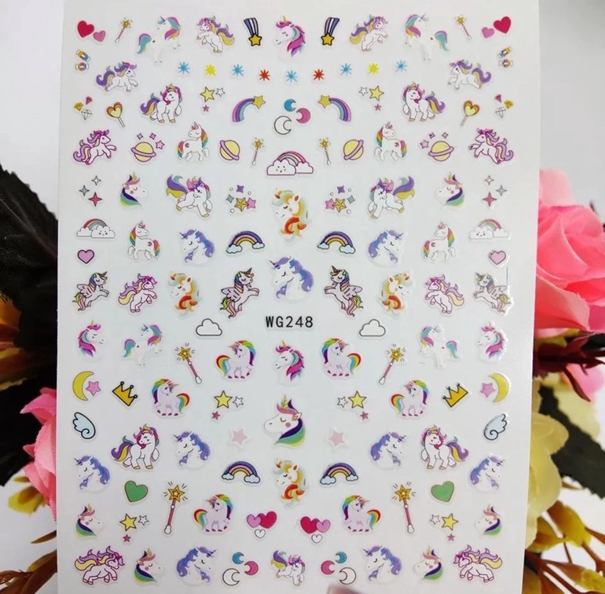 Vind jij je nagels nog een beetje saai er uit zien ? met deze stickers zijn ze direct prachtig versiert . Je krijgt bij dit product een heel vel vol met nagelstickers, zodat jij al je nagels prachtig kan versieren . Je hebt dan allemaal verschillende kleine ontwerpen wat te maken heeft met unicorns en regenbogen zo is geen een nagel het zelfde, en kan jij al je fantasie kwijt in het versieren van jouw nagels .
