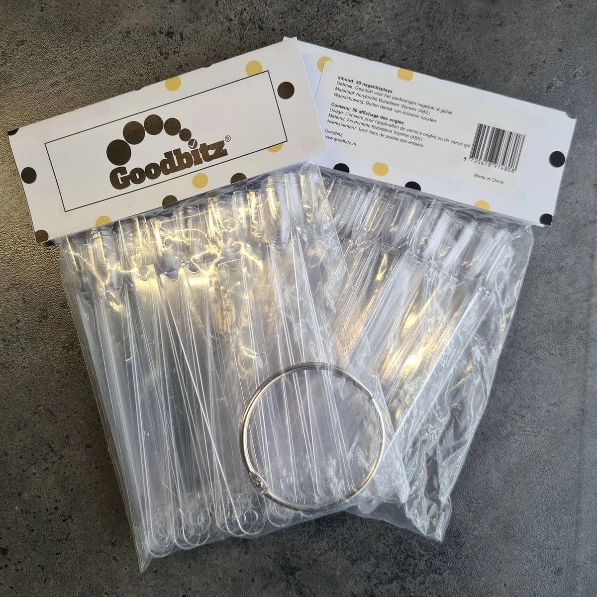 - Inhoud: 1 nageldisplay (50 nageltips per display) en 1 ring