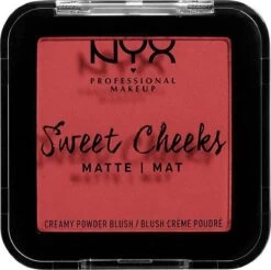 Fake de perfecte flush met Sweet Cheeks Matte Creamy Powder Blush Citrine Rose SCCPBM04 van NYX Professional Makeup, de gladde formule die prachtig gepigmenteerde kleuren levert met een echt matte finish. Verkrijgbaar in zowel traditionele tinten (roze, koraal en bessen) en kunstzinnig geïnspireerde tinten als paars en geel. Dit product heeft een Vegan Formule, wat wil zeggen dat het geen ingrediënten of bijproducten van dierlijke oorsprong bevat.