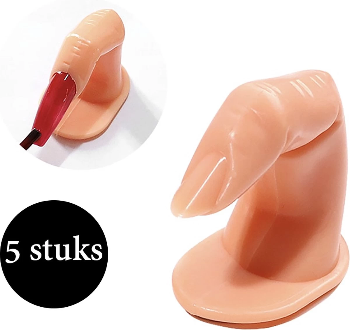 Let op: De oefenvingers zijn al voorzien van een nagel. Hierdoor is het enkel mogelijk om de huidige nagel te gebruiken of hierover een plaknagel te plakken.