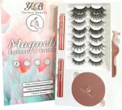 Yermin Beauty Magnetische Wimpers Set – Inclusief Wimperzetter En 2 Flesjes Waterproof Eyeliner – Wimperhouder Met Spiegel – 8+2 Paar Extra