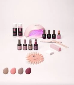 Met deze gellak starterset Premium Vogue® uit the Uncovered Collection wordt zelf thuis je gelnagels zetten een eitje! De set bevat onder andere een roze LED nagellamp met timer en vier vegan gellak kleuren (Blush Orange, Vintage Nude, Elegant Taupe en Creamy Mauve) zodat je direct aan de slag kan. De set bevat ook een vegan base, shine en prep booster zodat de nagellak wel 14 dagen blijft zitten. Ook zitten er producten bij waarmee je je nagels kunt schoonmaken en voorbereiden.