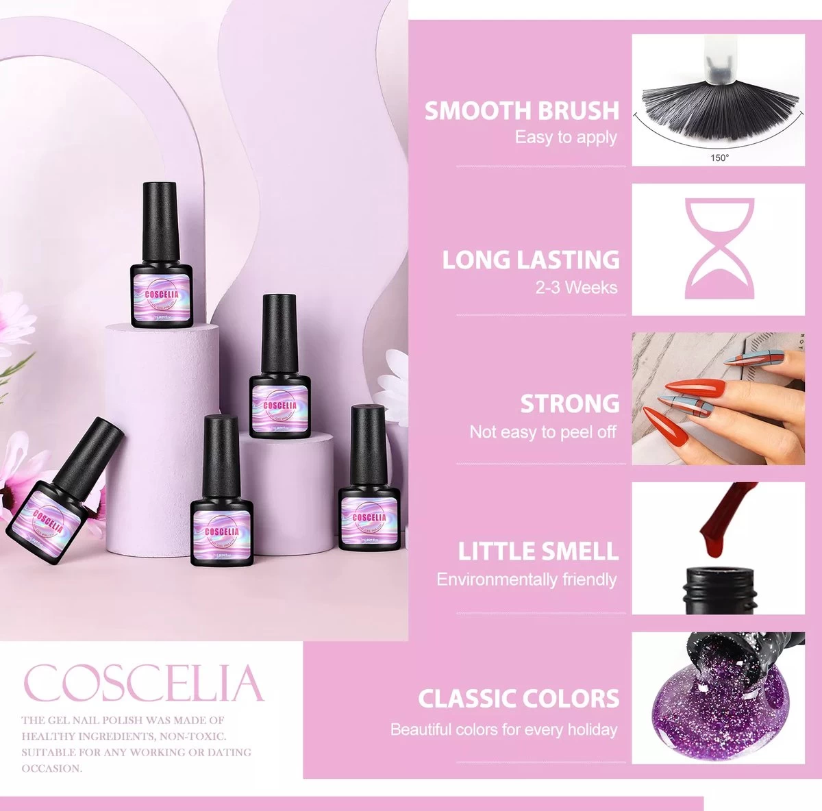 - Tijdens het zetten van gelnagels hangen er minder chemische geurtjes in de lucht..