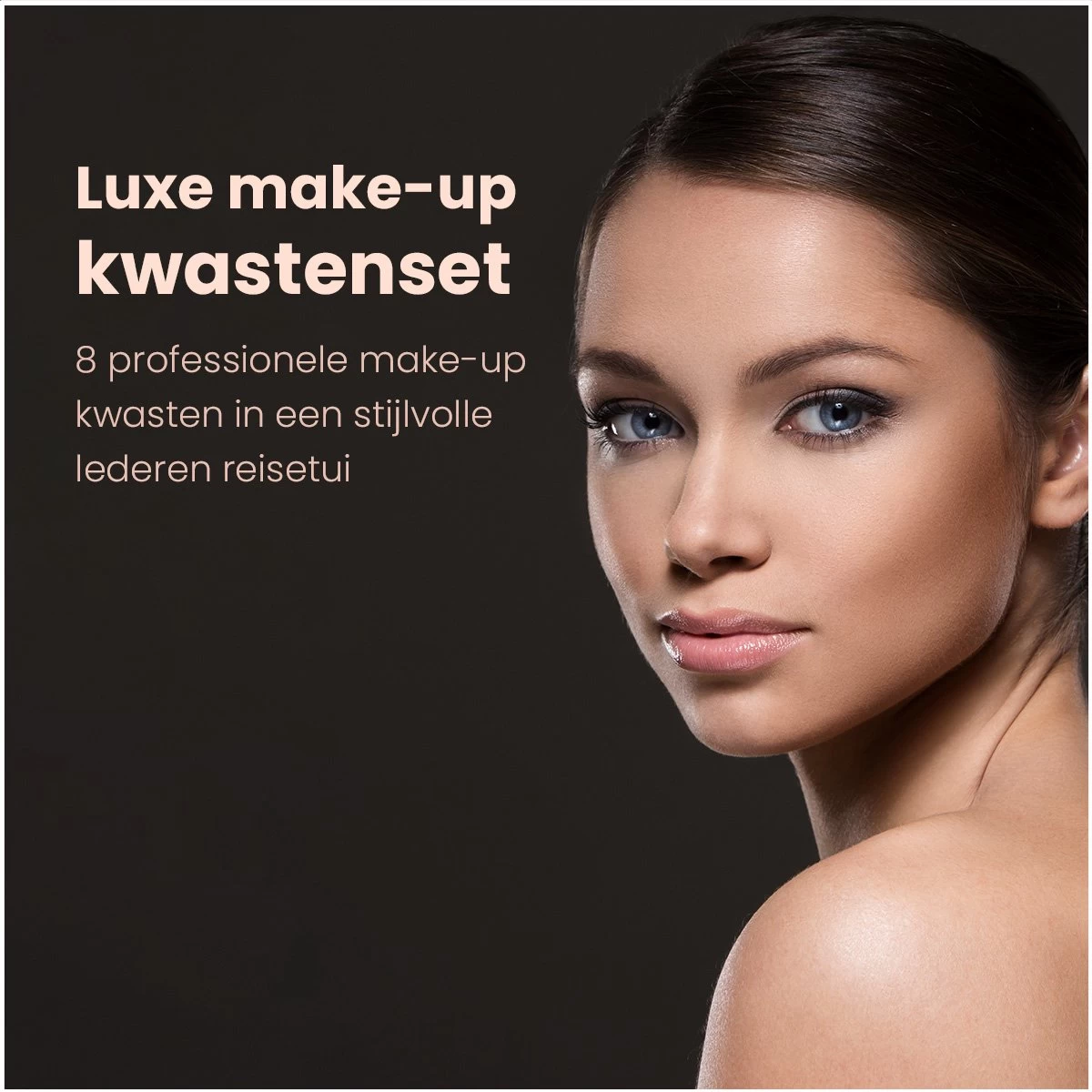 Deze Saaf luxe make-up kwastenset bevat 8 professionele make-up kwasten en worden geleverd in een stijlvolle lederen reisetui. Zo heb je altijd de beste kwast voor al je verzorging bij de hand. Door het handige compacte formaat is de etui makkelijk mee te nemen en op te bergen in een handtas of op reis. Door de verschillende kwasten zijn ze Ideaal voor in elke situatie. De kwasten zijn gemaakt van hoogwaardig materiaal. Hierdoor zijn deze kwasten erg gebruiksvriendelijk. De haren bestaan uit syntetisch nylon haar (zacht en glad).