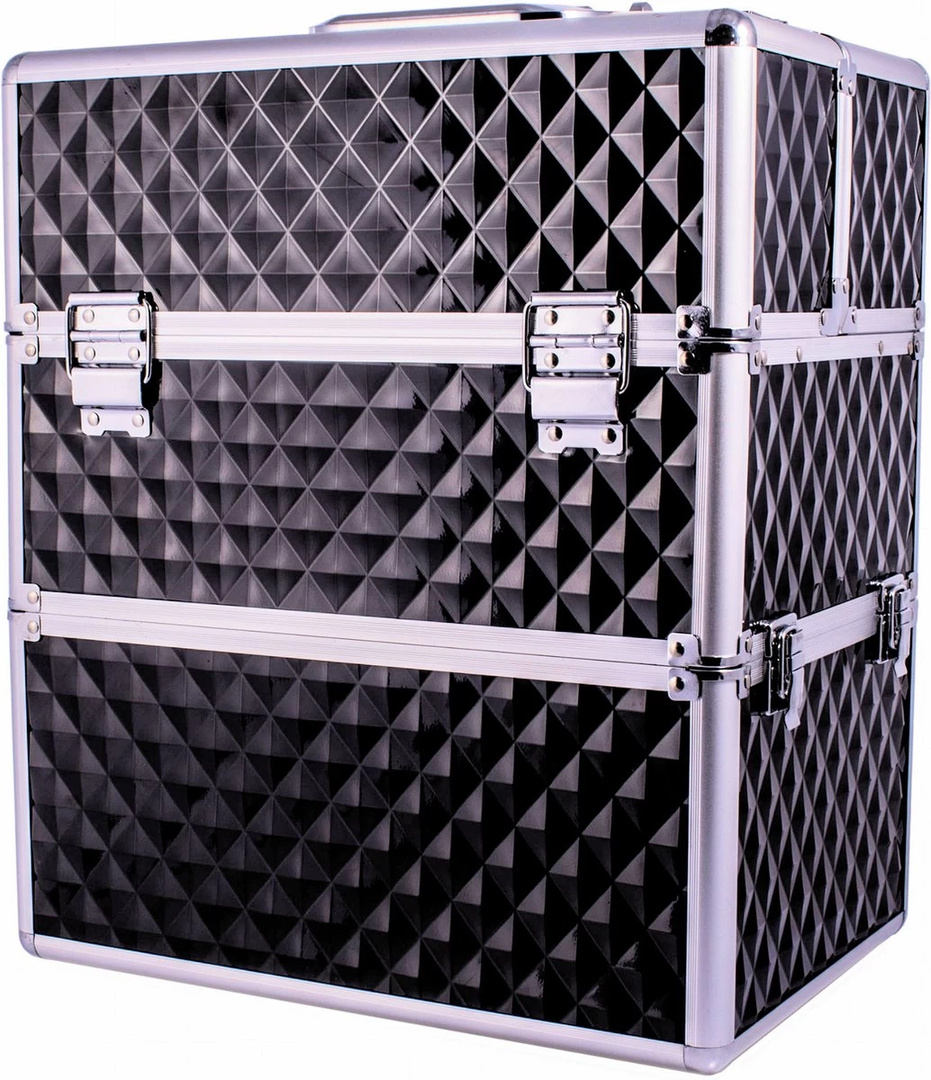 Een functionele en aantrekkelijke beauty make up koffer XL Zwart, perfect voor nagelstylisten, schoonheidsspecialisten, visagisten die in het veld werken of voor het opbergen van cosmetica thuis.