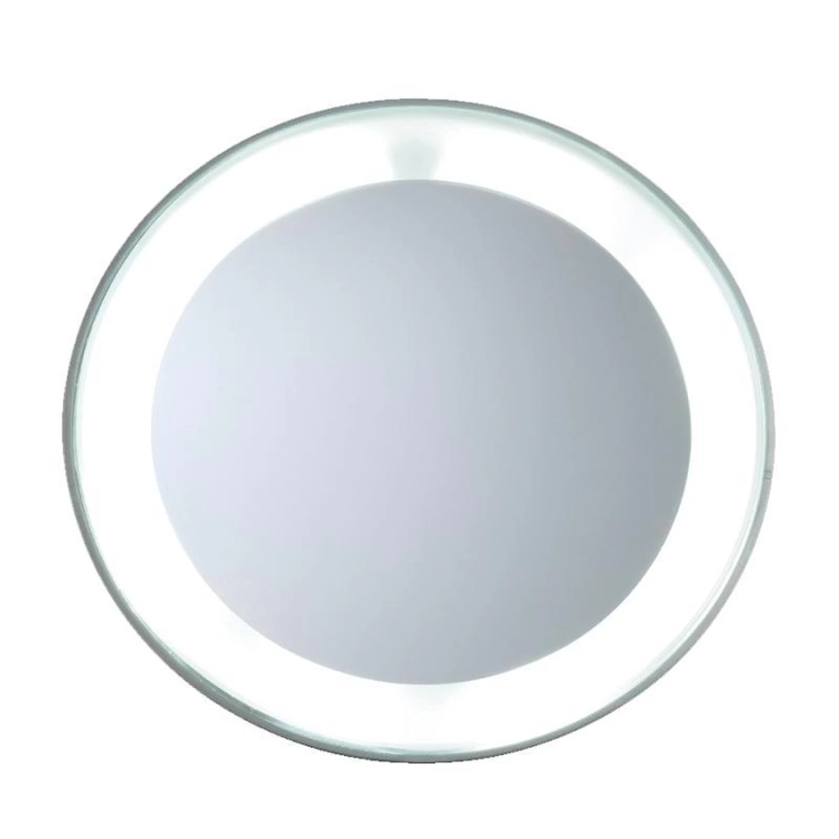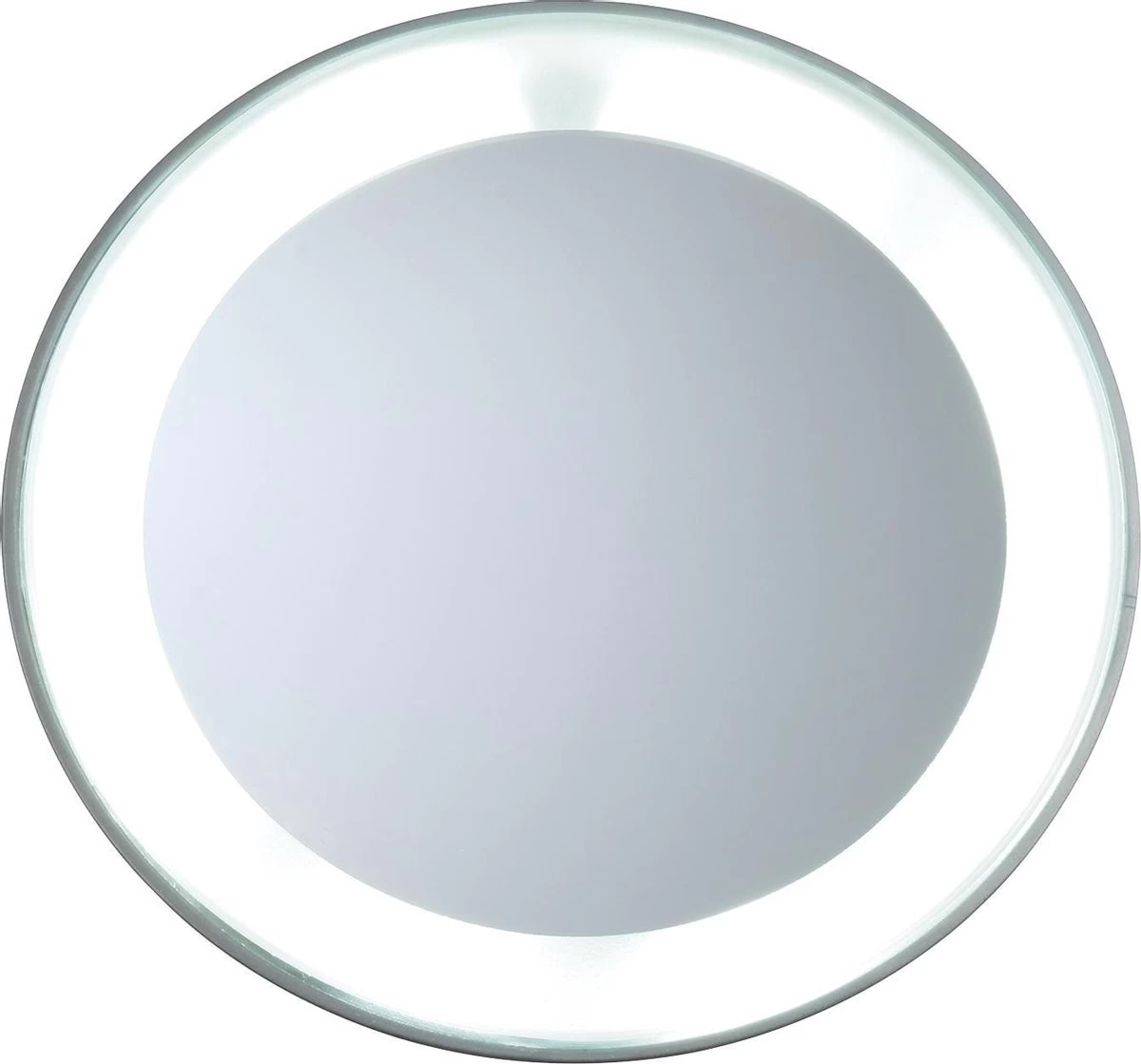 Compacte 15x Mini met LED licht spiegel van Tweezerman die 15x vergroot van rand tot rand zonder enige vertekeningen. De heldere verlichting rondom de spiegel verduidelijkt het gebied rondom het oog. Ideaal voor epileren, make-up aanbrengen en voor contactlensdragers. De zuignapjes op de achterkant van de spiegel kunnen geplakt worden op een gladde oppervlakte. Batterijen zijn vervangbaar. De diameter van de spiegel: 6,9 cm. Diameter inclusief LED verlichting: 8,8 cm.